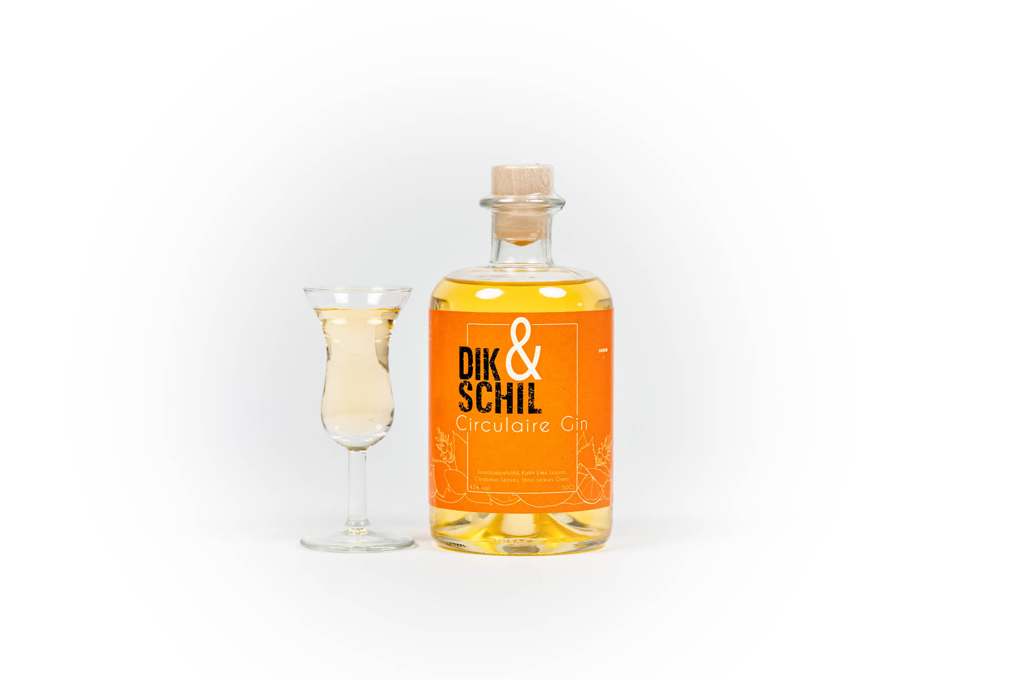 Dik&Schil’s circulaire gin is gemaakt met sinaasappelschillen die afkomstig zijn uit de horeca. Ook hebben wij reststromen van Koppert Cress gebruikt. In deze zachte en kruidige gin krijgen Kaffir Lime Leaves, Cardamom Leaves en Shiso Leaves een tweede leven. Het resultaat is een heerlijke zachte citrus gin met een verrassende kruidige twist. Een unieke gin, zacht genoeg om puur te nippen maar ook perfect voor een cocktail of gin tonic.